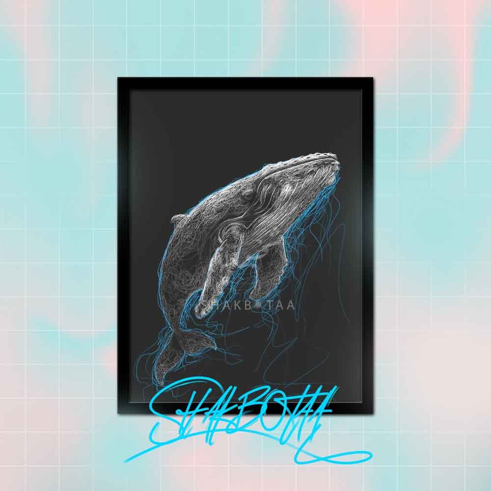 تعكس هذه اللوحة هيبة الحوت وجماله المهيب، لتكون قطعة فنية مميزة تضيف لمسة من السكينة والدهشة لأي مساحة.
