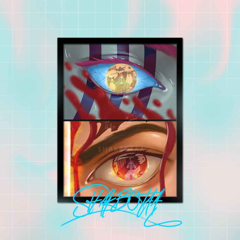 عمل حصري يوقّع عليه الفنانة سوو، يجسد لحظة صراع تانجيرو ضد أكازا في أسلوب فنّي رقمي مميز.
