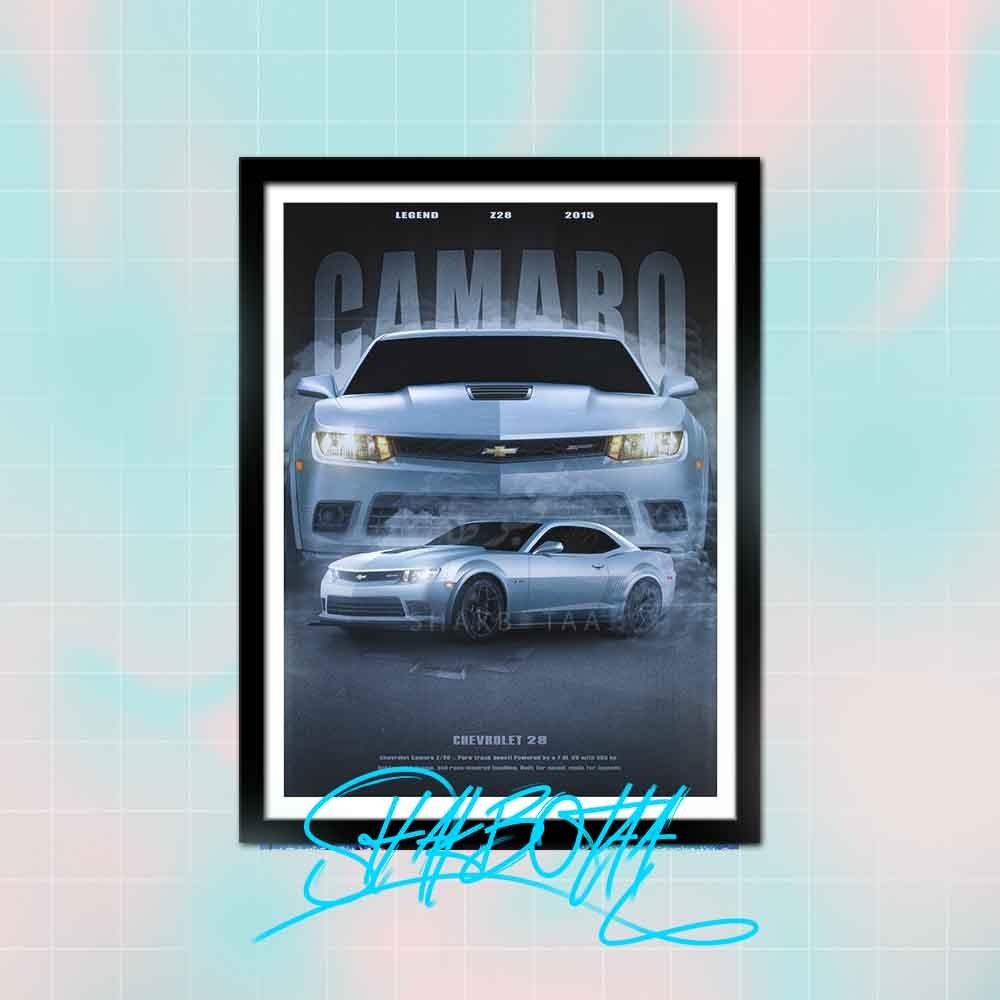 تقدم لك هذه اللوحة تصميم شيفروليه كامارو Z28 الأسطورية، حيث تتجلى العضلات الانسيابية، القوة الديناميكية، والتفاصيل الرياضية التي تميز هذه السيارة الكلاسيكية.