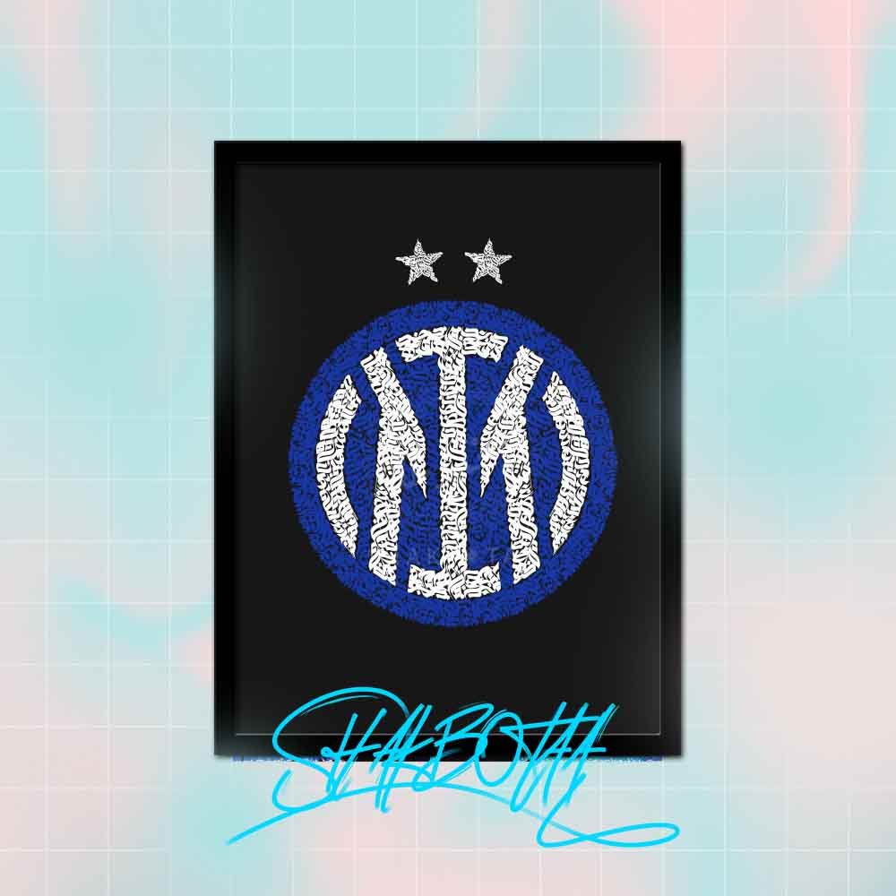 تقدم لك هذه اللوحة نسخة فنية فريدة من شعار نادي إنتر ميلان مكتوبًا بالحروف العربية بأسلوب أنيق ومبتكر.