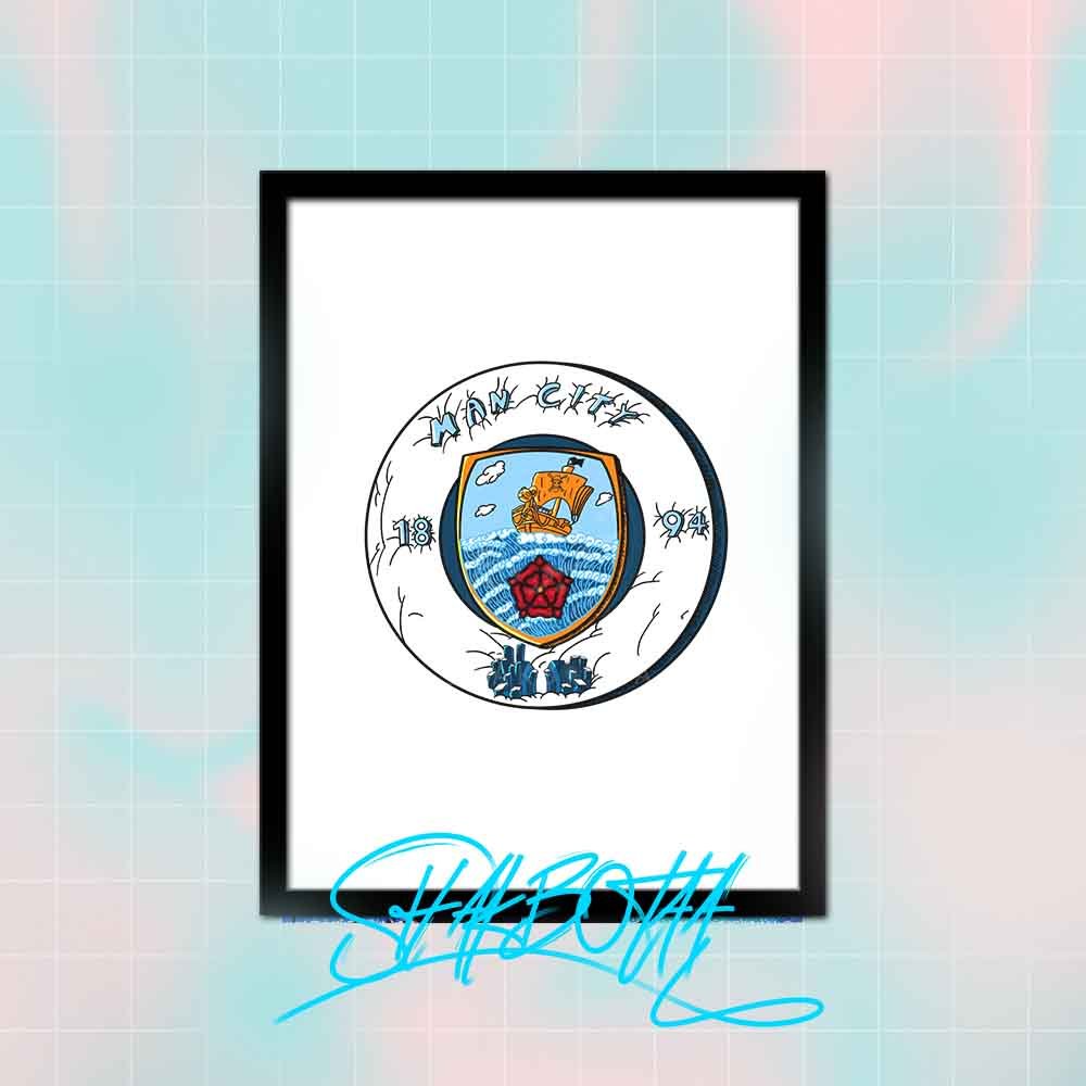شعار مانشستر سيتي الشهير يأتي هذه المرة بروح الدودلز المرحة، حيث تمتزج الألوان الزاهية والخطوط العفوية مع التصميم الكلاسيكي للشعار.