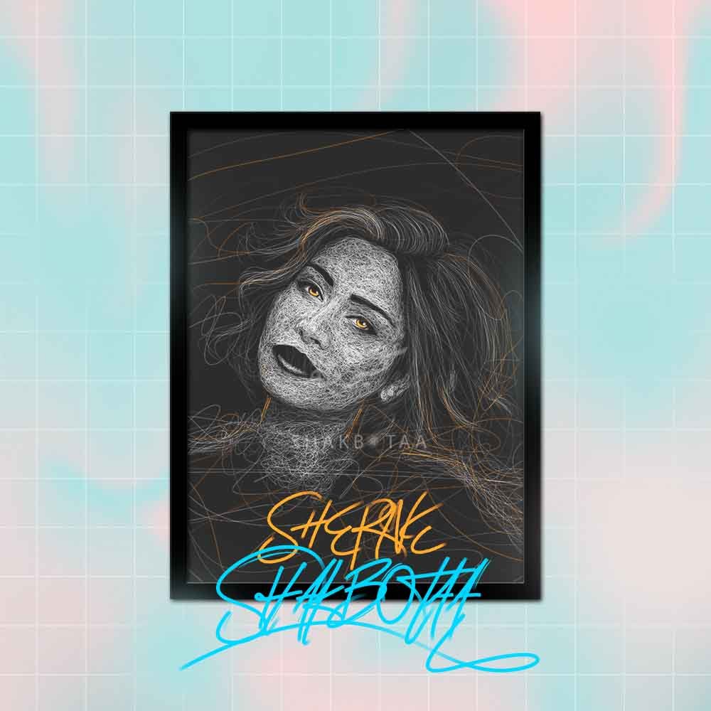 تعكس هذه اللوحة حضور شيرين الفني وصوتها المميز، لتكون قطعة فنية تضيف لمسة موسيقية وعاطفية لأي مساحة.