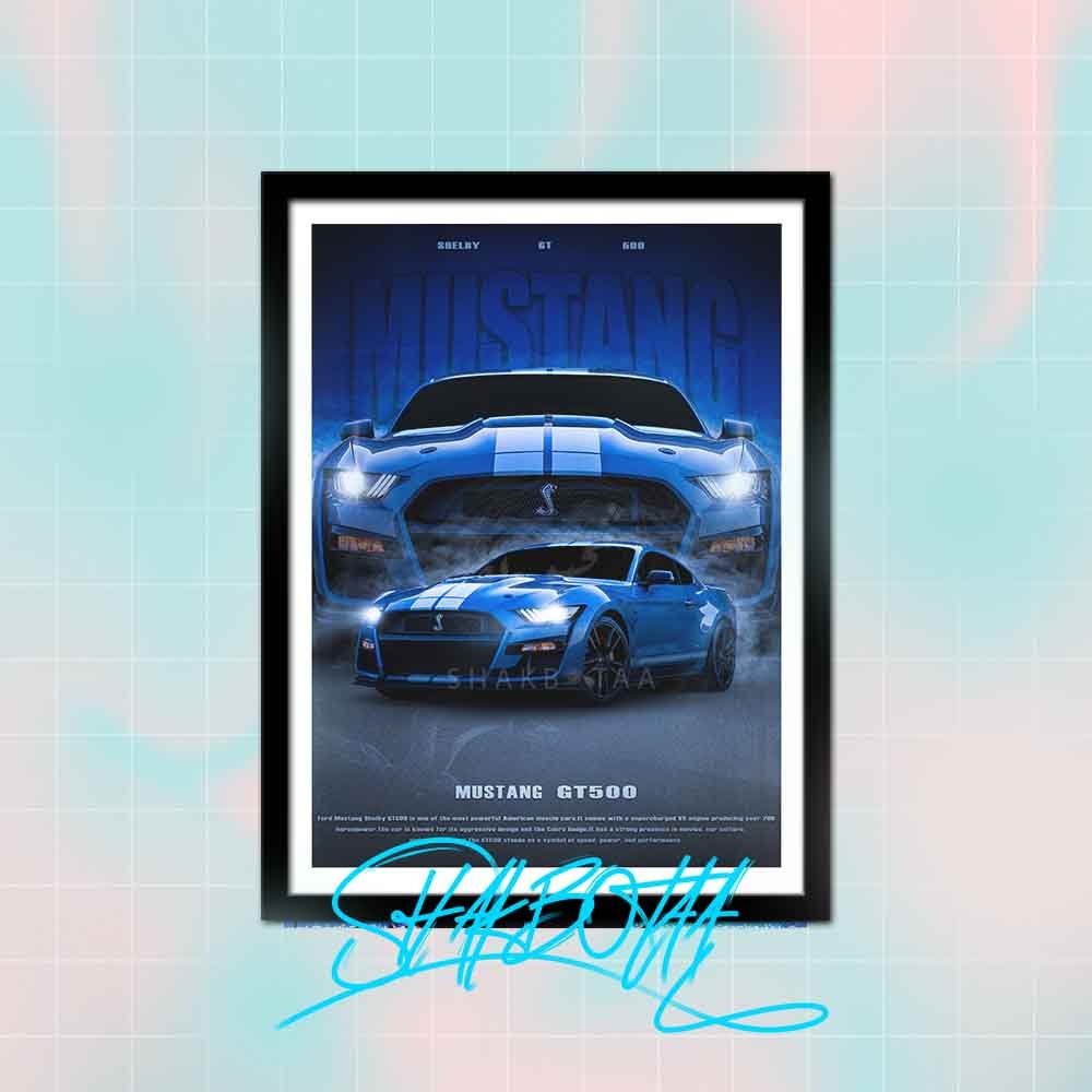 تقدم لك هذه اللوحة تصميم فورد موستانج GT500 الأسطوري، حيث تتجلى القوة العضلية، الأداء الرياضي العالي، والتفاصيل الانسيابية التي تجعل هذه السيارة أيقونة في عالم السيارات.