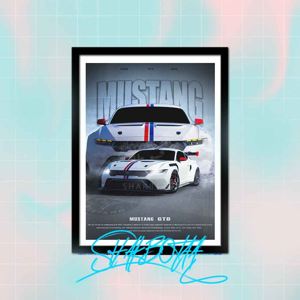 تقدم لك هذه اللوحة تصميم فورد موستانج GTD الرياضي والأنيق، حيث تتجلى العضلات الانسيابية، القوة الديناميكية، والتفاصيل الفاخرة التي تميز هذه السيارة المميزة.