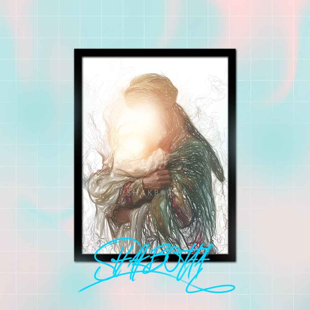 رسم يدوي رقمي باستخدام أجهزة رسم إلكترونية، مطبوع بجودة عالية جدًا على ورق خاص بمتجر شخبوطة.