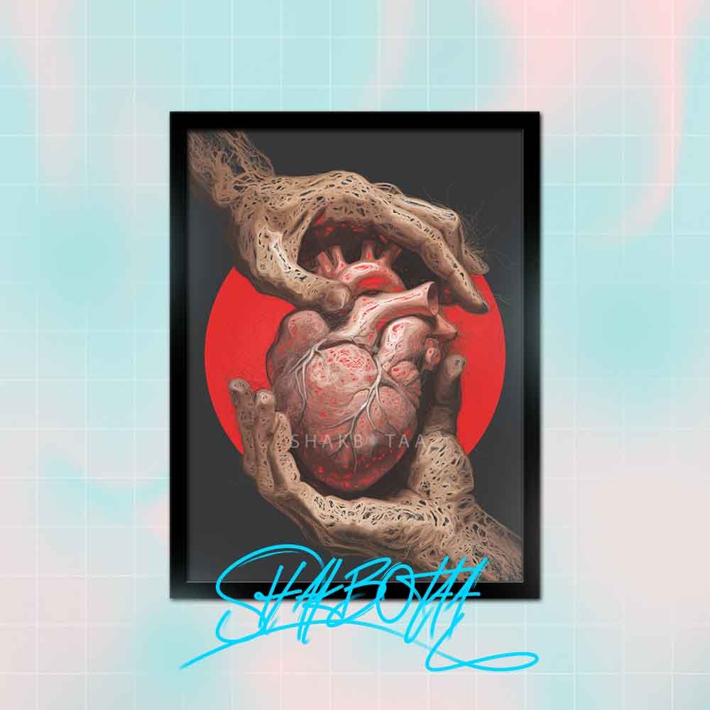 تعكس هذه اللوحة مشهد يدين متشابكتين وبينهما شكل قلب، رمز الحب، الوحدة، والانتماء العاطفي العميق بين شخصين.